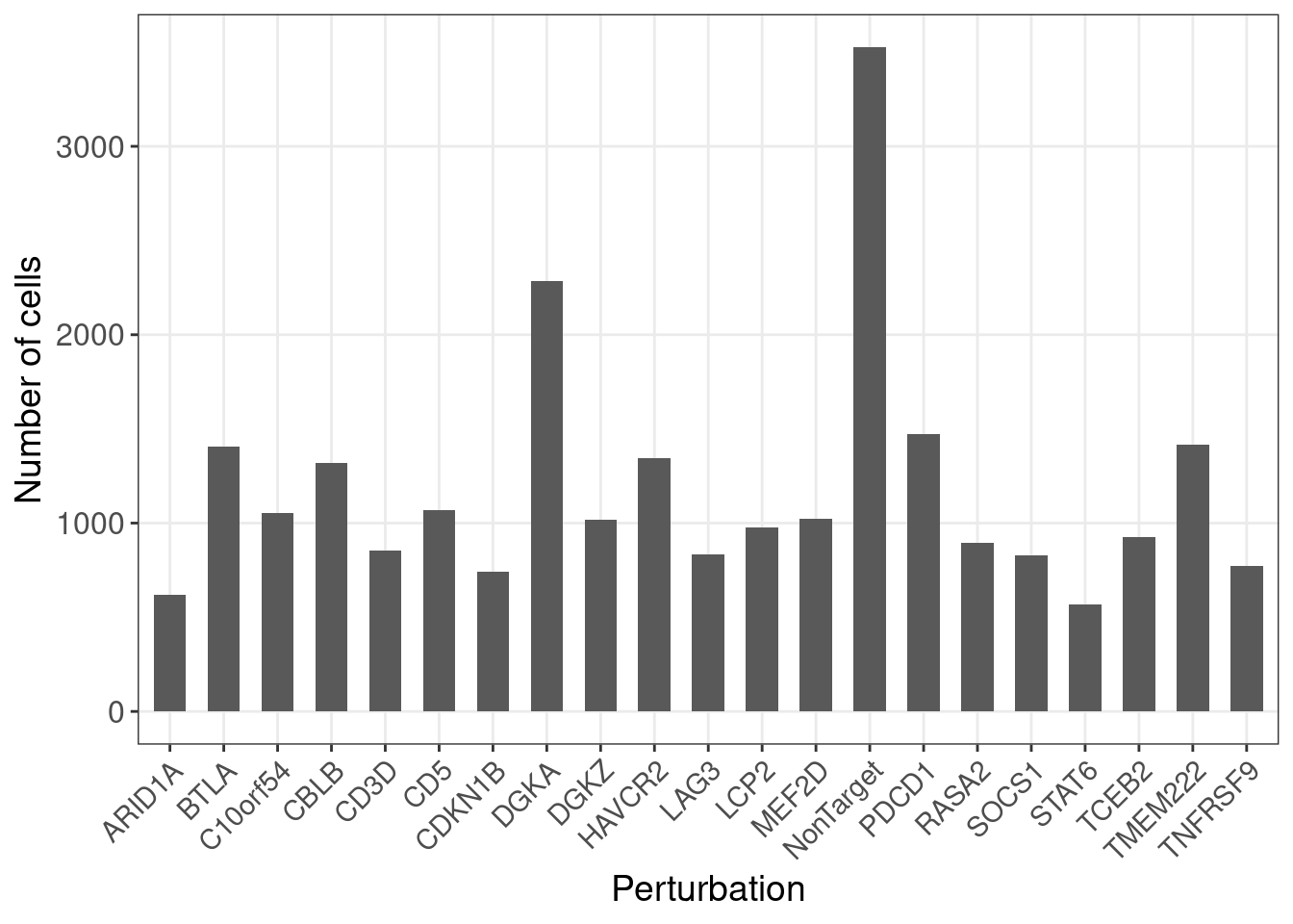 gene-level perturbations are assigned to cells, resulting in 21 (20
